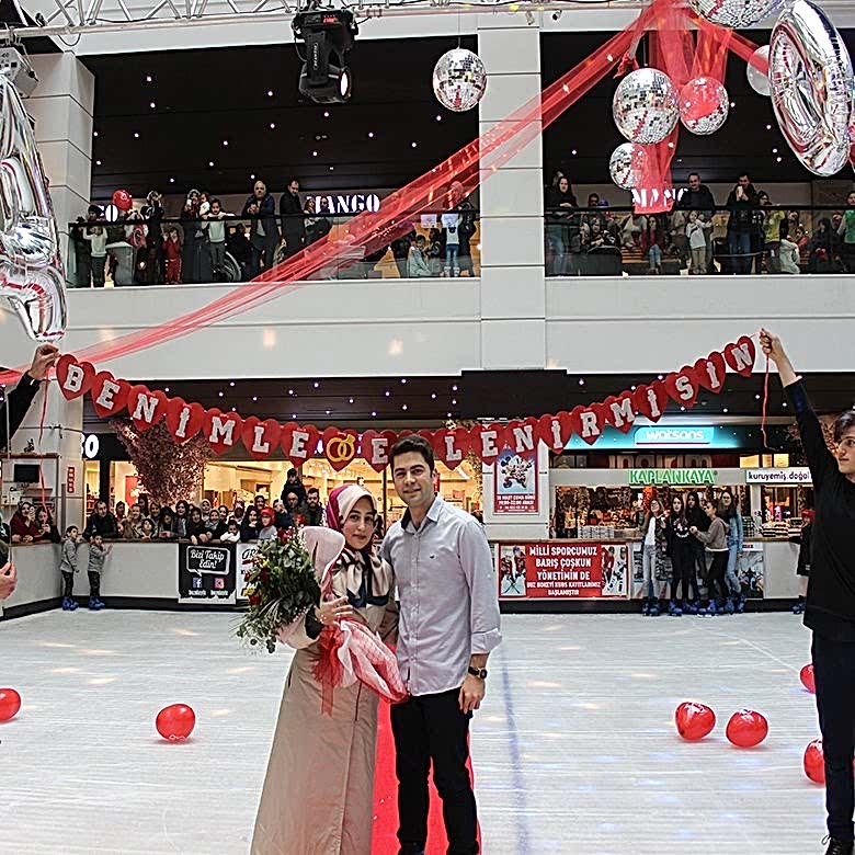 Buz pateni pistinde evlilik teklifi etmek romantik ve unutulmaz bir anı olabilir.